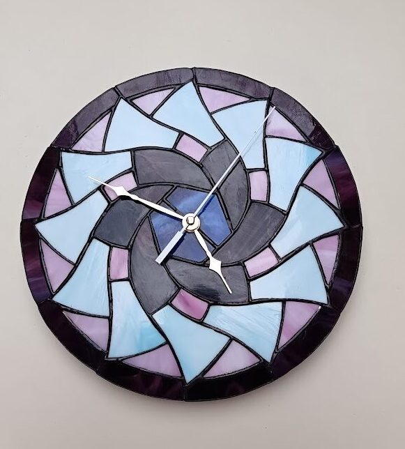Tiffany technikával késztett kézműves falióra.
