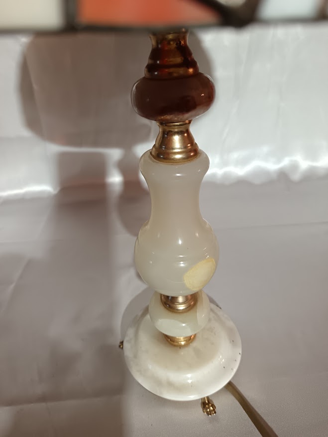 A lámpa talp onyx és sárgaréz. A talpat aukción vásároltuk, nem új.