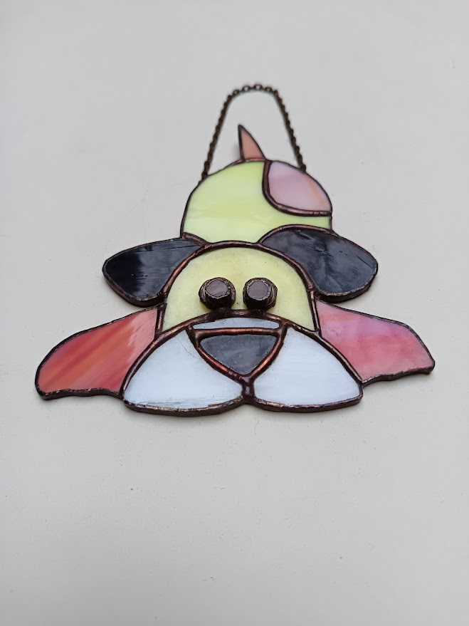 Tiffany technikával készített kutya állatfigura.