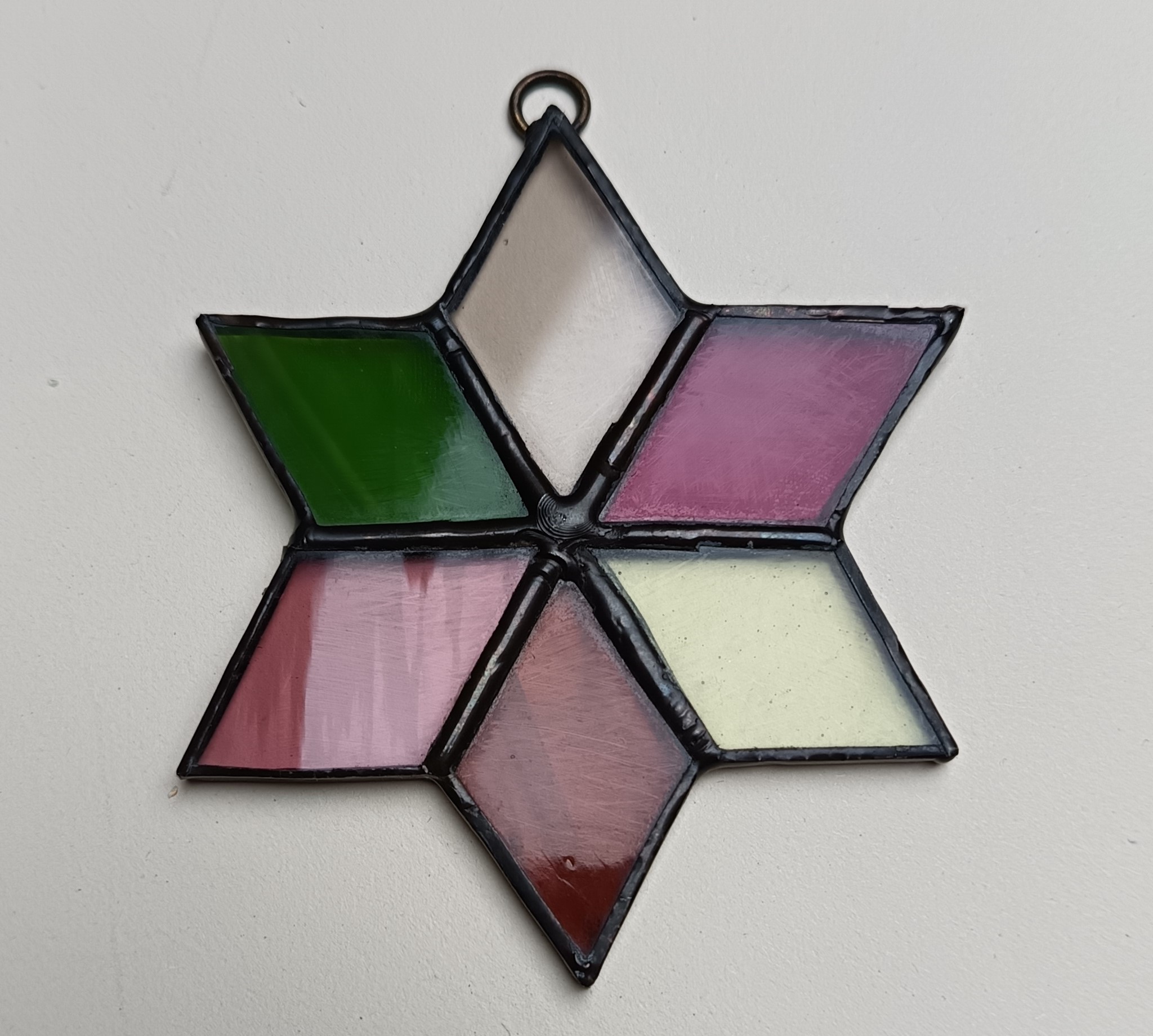 Csillag tiffany technikával készítve. Kézműves termék.