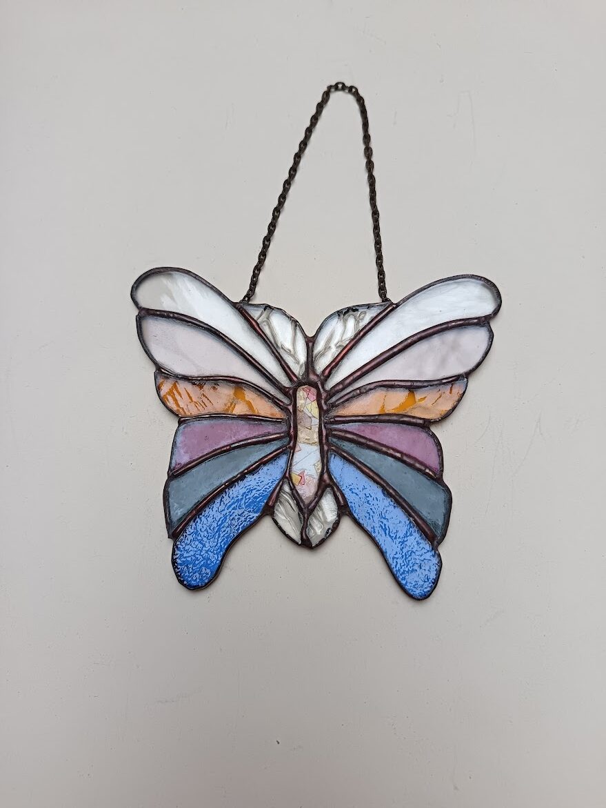 Tiffany technikával készített pillangó állatfigura.