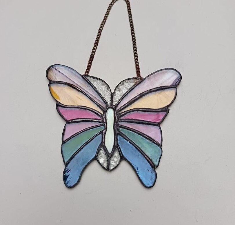 Tiffany technikával készített pillangó állatfigura.