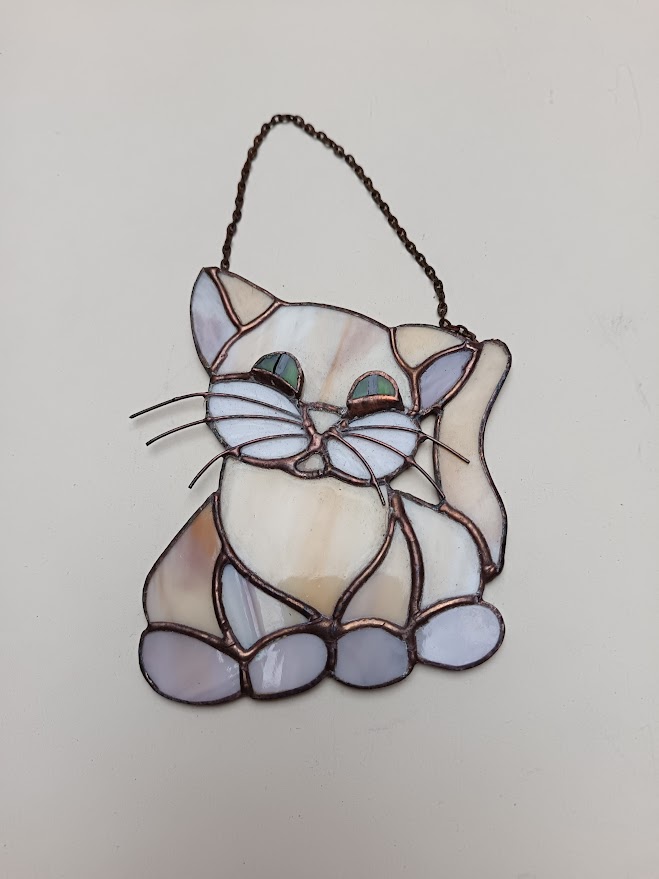 Tiffany technikával készített macska állatfigura.